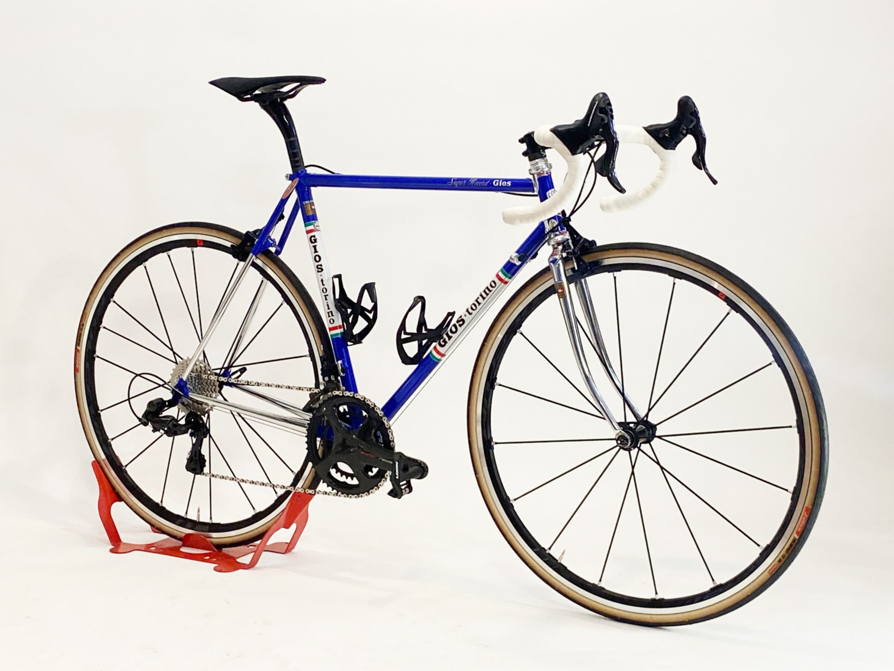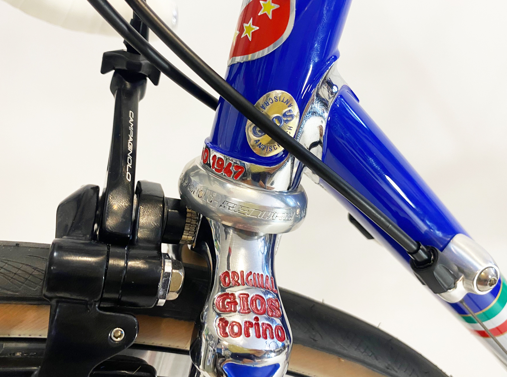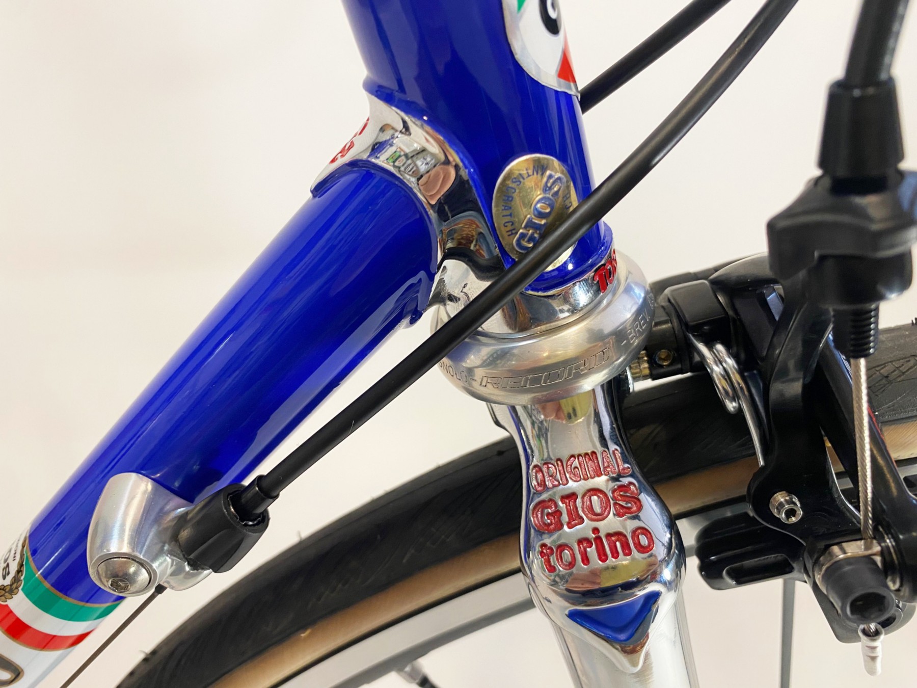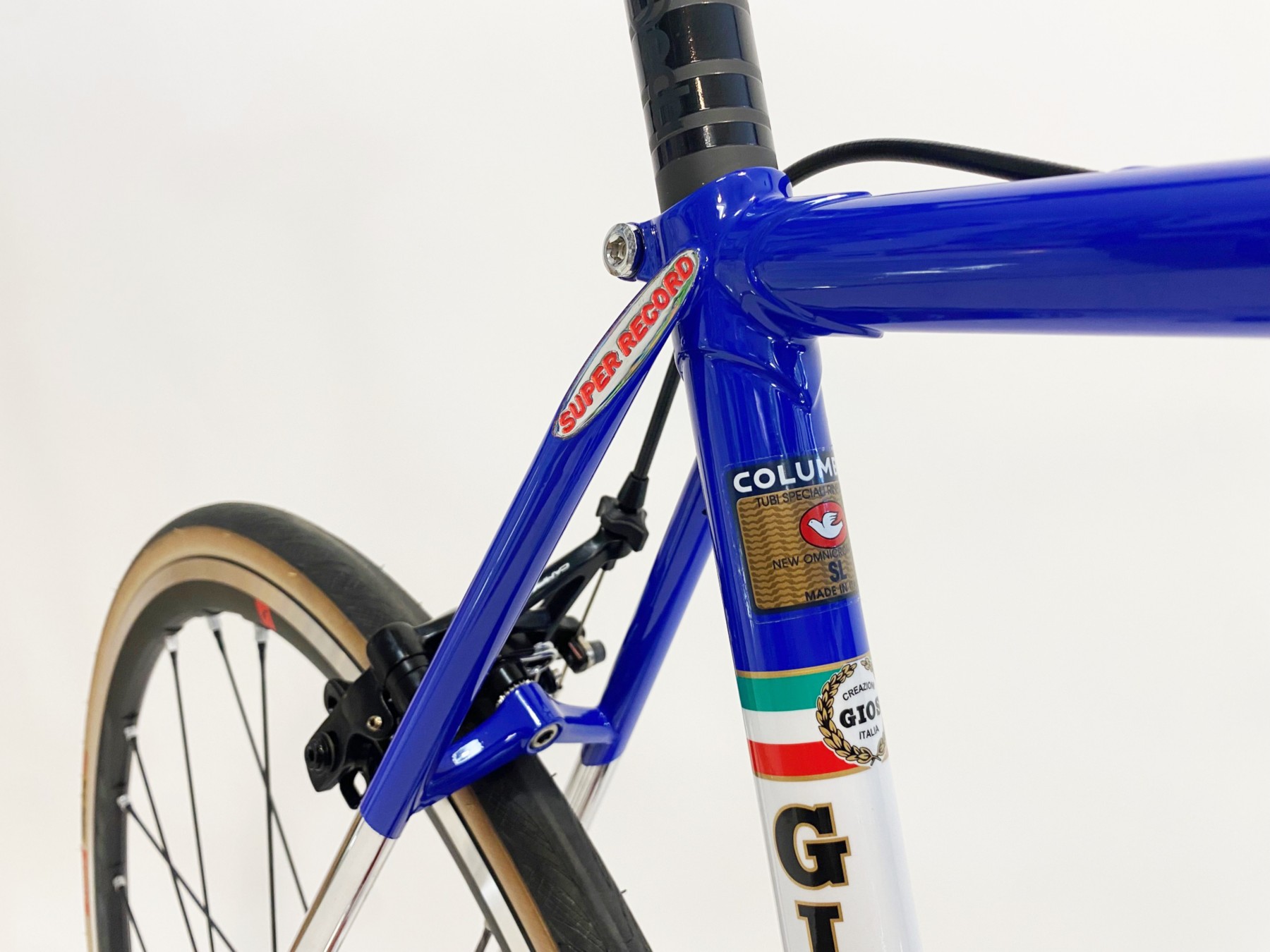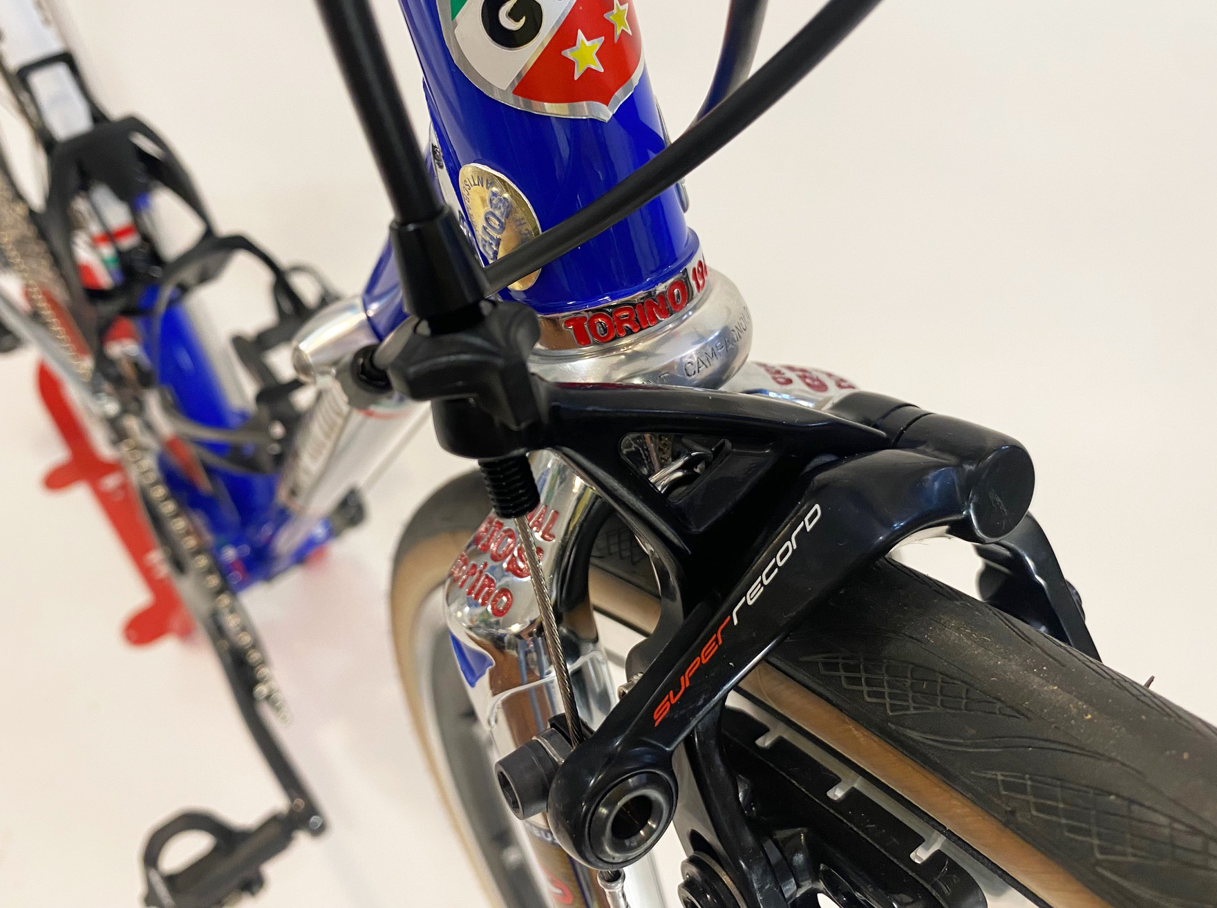Rivisitato in chiave moderna si adatta a un montaggio moderno senza compromessi. Congiunzioni cromate con logo Gt disegnato da Aldo nel 1973 per il Team Brooklyn, Incisioni “Gios Torino” e “Made in Italy” , le nuove pendine Super Record e pipe anteriori impreziosite da ulteriori incisioni.